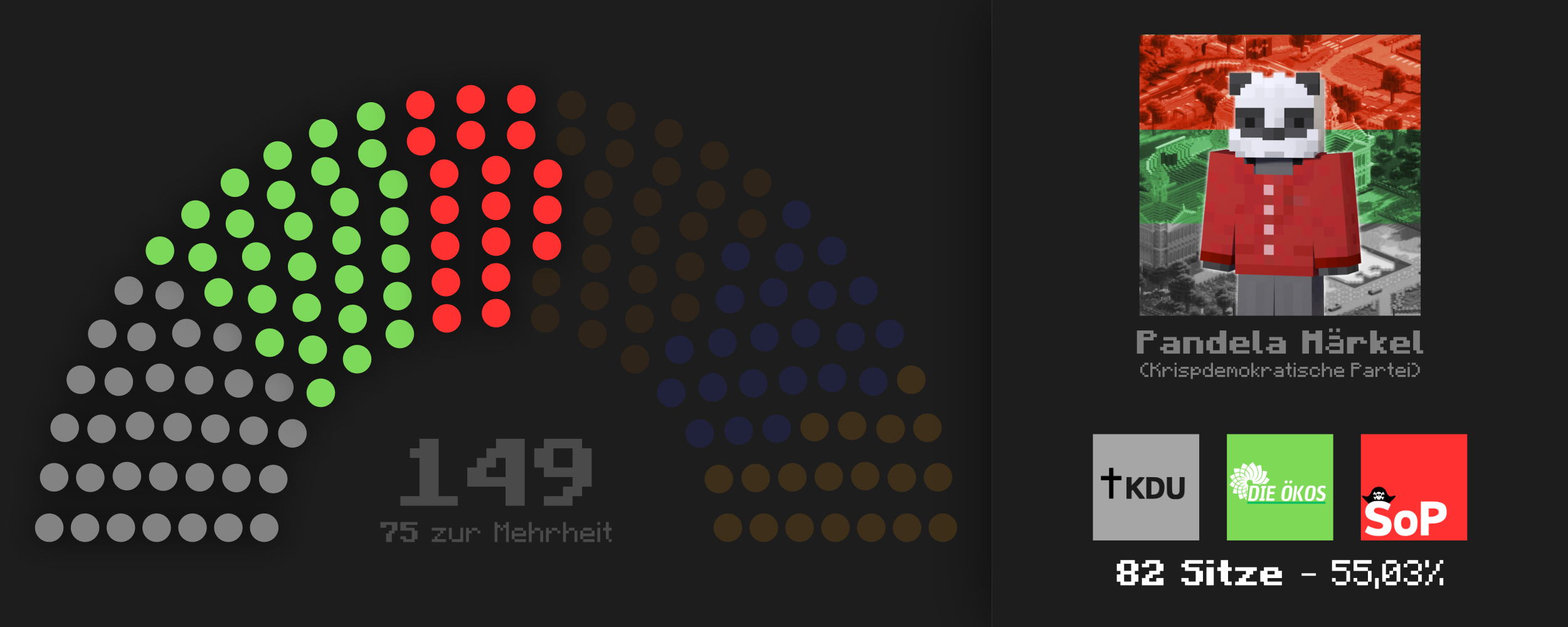 Bei der Wahl erlangte die Einrichtungspartei mit ihrem Spitzenkandidaten Kewin Knopf die absolute Mehrheit. Vermutlich weil das Interesse der Bevölkerung bestand, die vielen gebauten Häuser auch mal einzurichten.